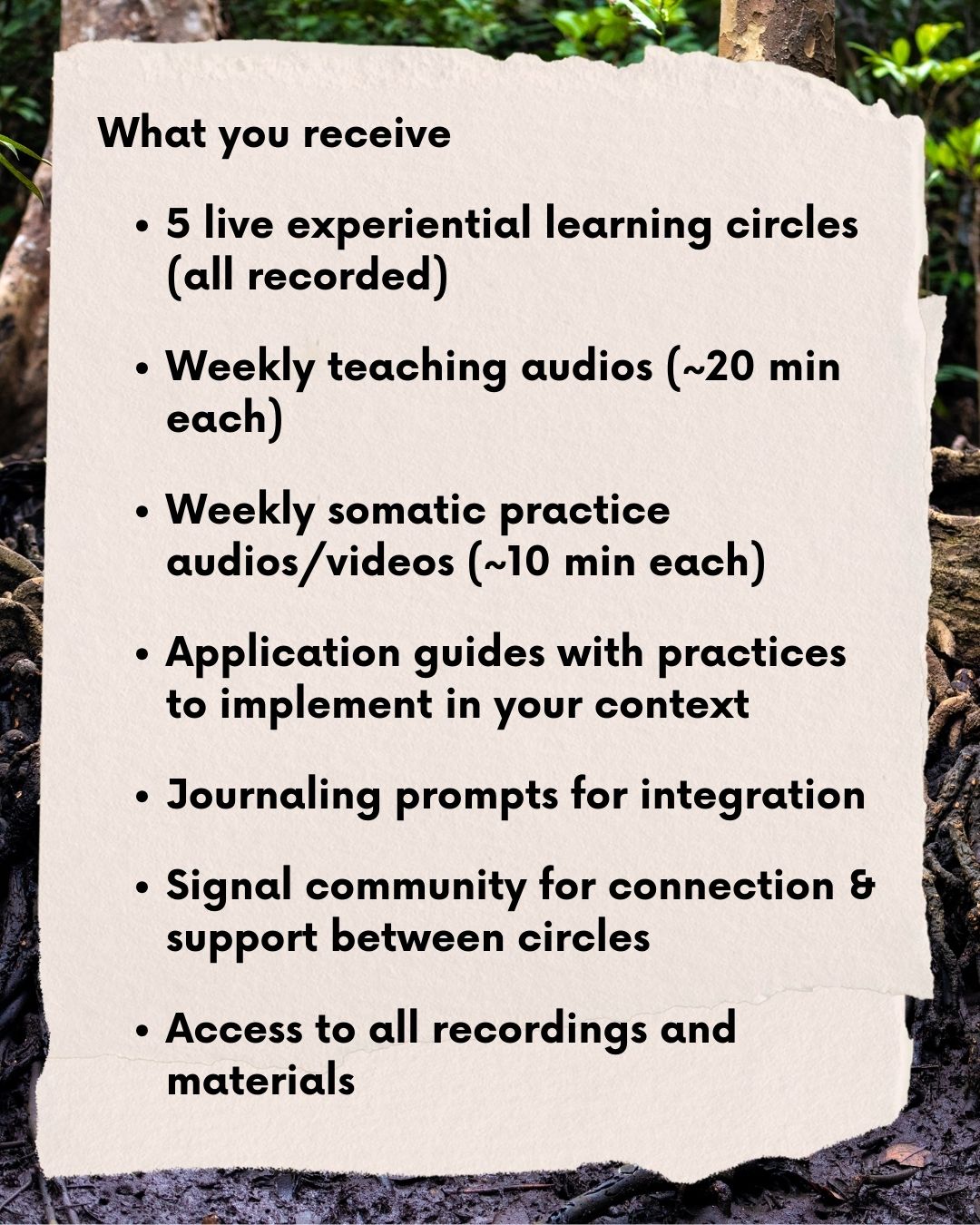 ✦ 5 live experiential learning circles (all recorded)